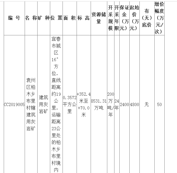 根據(jù)《江西省土地使用權(quán)和礦業(yè)權(quán)統(tǒng)一網(wǎng)上交易管理辦法》等有關(guān)規(guī)定,受宜春市自然資源局委托,宜春市土地礦產(chǎn)交易中心以網(wǎng)上拍賣(mài)方式出讓下列礦業(yè)權(quán)。