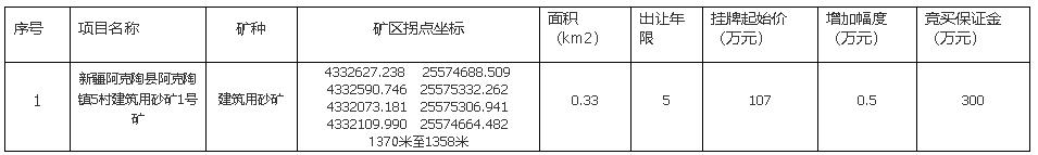 (八) 本次采礦權(quán)掛牌出讓事宜可瀏覽:在中華人民共和國國土資源部網(wǎng)站及克州公共資源交易中心網(wǎng)、克州日報同時發(fā)布