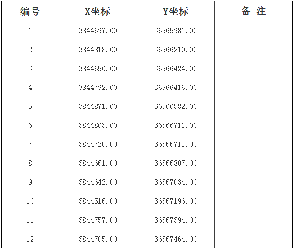 該礦區(qū)位于淳化縣方里鎮(zhèn)寧塬村三王溝,礦區(qū)面積為0.3087平方公里,開采標高942米至760米,礦區(qū)范圍由19個拐點圈定;開采礦種為建筑石料用灰?guī)r;資源儲量約3942萬噸;擬建礦山規(guī)模200萬噸/年。礦區(qū)范圍拐點坐標見下表(1980西安坐標系):