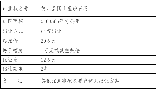 本公告在全國礦業(yè)權(quán)出讓轉(zhuǎn)讓公示公開系統(tǒng)、銅仁市公共資源交易中心門戶網(wǎng)站、德江縣人民政府網(wǎng)站、德江縣國土資源局門戶網(wǎng)站同步發(fā)布,競買意向人請認(rèn)真閱讀掛牌文件。