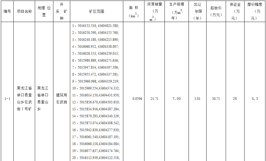 根據(jù)《中華人民共和國礦產(chǎn)資源法》、《礦產(chǎn)資源開采登記管理辦法》、國土資源部《探礦權(quán)采礦權(quán)招標(biāo)拍賣掛牌管理辦法(試行)》和《國土資源部關(guān)于印發(fā)礦業(yè)權(quán)交易規(guī)則(試行)的通知》(國土資發(fā)[2011]242號)等相關(guān)法律法規(guī)的規(guī)定,受林口縣國土資源局委托,牡丹江市公共資源交易中心將公開掛牌出讓2018年第一批采礦權(quán)(4宗),現(xiàn)就有關(guān)事項公告如下: