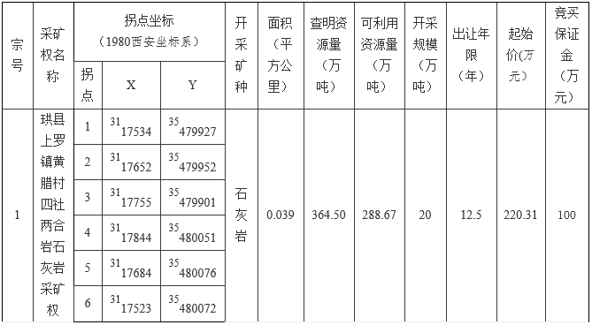 二、出讓方式:本次采礦權(quán)采用拍賣出讓,按照價(jià)高者得(不低于起拍價(jià))原則確認(rèn)競得人。