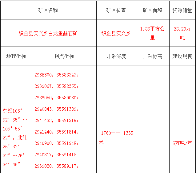 根據(jù)《中華人民共和國(guó)礦產(chǎn)資源法》、《礦產(chǎn)資源開(kāi)采登記管理辦法》、《貴州省礦產(chǎn)資源管理?xiàng)l例》和國(guó) 土資源部《探礦權(quán)采礦權(quán)招標(biāo)拍賣(mài)掛牌管理辦法(試行)》的規(guī)定,受畢節(jié)市國(guó)土資源局委托,畢節(jié)市公共資源交易中心(以下簡(jiǎn)稱(chēng)掛牌人)以?huà)炫品绞綄?duì)織金縣實(shí)興鄉(xiāng)白龍重晶石礦采礦權(quán)組織公開(kāi)出讓?,F(xiàn)將有關(guān)事項(xiàng)公告如下: