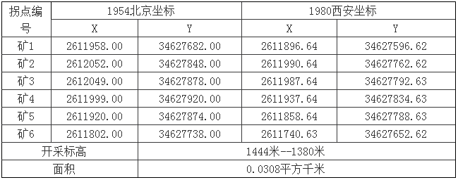 礦區(qū)范圍拐點(diǎn)坐標(biāo)表(表二)