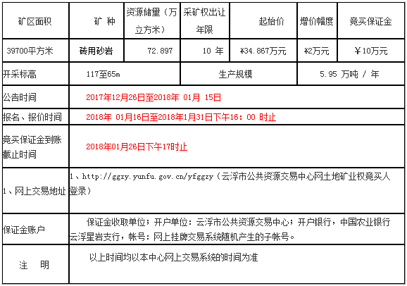 本次掛牌交易競買人通過云浮市公共資源交易網(wǎng)報(bào)名報(bào)價,不接受電話、郵寄和口頭報(bào)價。本次礦業(yè)權(quán)掛牌出讓按照價高者得原則確定競得人,掛牌時間截止時有競買人表示愿意繼續(xù)競價的,則轉(zhuǎn)入現(xiàn)場競價確定競得人。