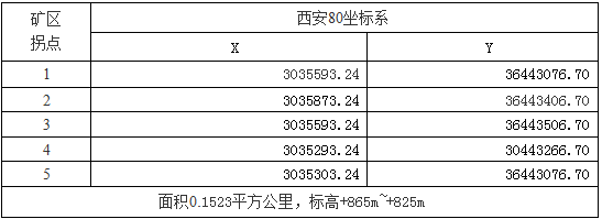 一、出讓標(biāo)的:礦區(qū)資源量377.1萬(wàn)噸,在以下礦區(qū)范圍內(nèi)占用75萬(wàn)噸建筑石料用灰?guī)r資源量。礦山設(shè)計(jì)生產(chǎn)規(guī)模:15萬(wàn)噸/年;出讓年限:5年。