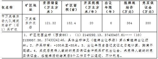 根據(jù)《中華人民共和國(guó)礦產(chǎn)資源法》、國(guó)土資源部《礦業(yè)權(quán)交易規(guī)則》及《海南省公共資源交易管理辦法》等相關(guān)法律法規(guī)的規(guī)定,瓊海市國(guó)土資源局決定以掛牌方式出讓瓊海市萬泉鎮(zhèn)東升農(nóng)場(chǎng)九隊(duì)建筑用花崗巖礦(石海01)采礦權(quán)。本次掛牌出讓由瓊海市國(guó)土資源局委托海南省土地儲(chǔ)備整理交易中心(海南省礦業(yè)權(quán)交易中心)具體承辦?,F(xiàn)將有關(guān)事項(xiàng)公告如下: