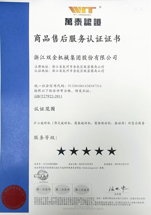 10月12-13日,專業(yè)售后服務評價體系審核組老師到雙金總部,對公司售后服務體系進行現(xiàn)場評審。經(jīng)審核,我公司售后服務體系運行有效,并獲得商品售后服務★★★★★認證證書,標志著我公司售后服務得到高度認可。