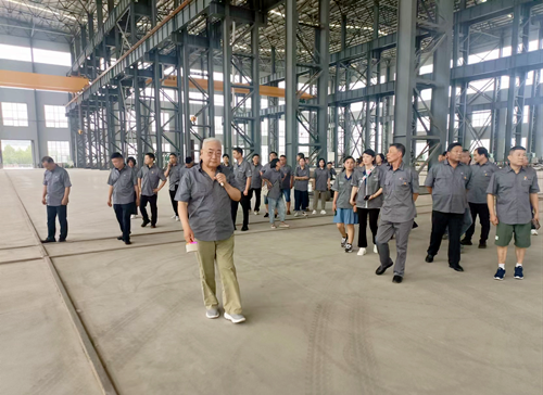 在廠房正門口前,董事長重點介紹“目光遠大腳踏實地依靠員工共圖發(fā)展”的企業(yè)標語與價值觀,并著重說明從“遵紀守法善待員工”向“依靠員工共圖發(fā)展”的轉變,這是公司不同發(fā)展階段的不同思想,雙金是所有員工共同發(fā)展努力的結果。