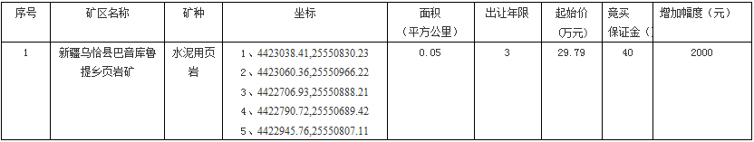 注:最終成交的采礦區(qū)范圍坐標(biāo)以與烏恰縣國土資源局簽訂出讓合同中確定的采礦區(qū)范圍坐標(biāo)(西安1980坐標(biāo)系值)為準(zhǔn)(本次掛牌出讓礦權(quán)標(biāo)高:從2488米至2390米)。