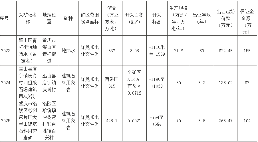 一、序號(hào)GC17023 采礦權(quán)出讓人:重慶市國(guó)土資源和房屋管理局,地址:渝中區(qū)人和街99號(hào);