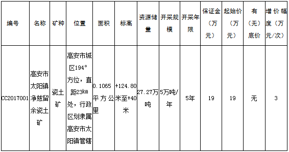 根據(jù)《江西省土地使用權和礦業(yè)權統(tǒng)一網(wǎng)上交易管理辦法》等有關規(guī)定,受宜春市國土資源局委托,宜春市土地礦產(chǎn)交易中心以網(wǎng)上拍賣方式出讓下列礦業(yè)權。