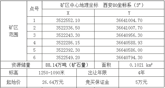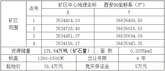 3、本次出讓礦區(qū)地質(zhì)工作程度較低,投資風(fēng)險較大,請競買人注意防范,一切風(fēng)險由競得人承擔(dān)。