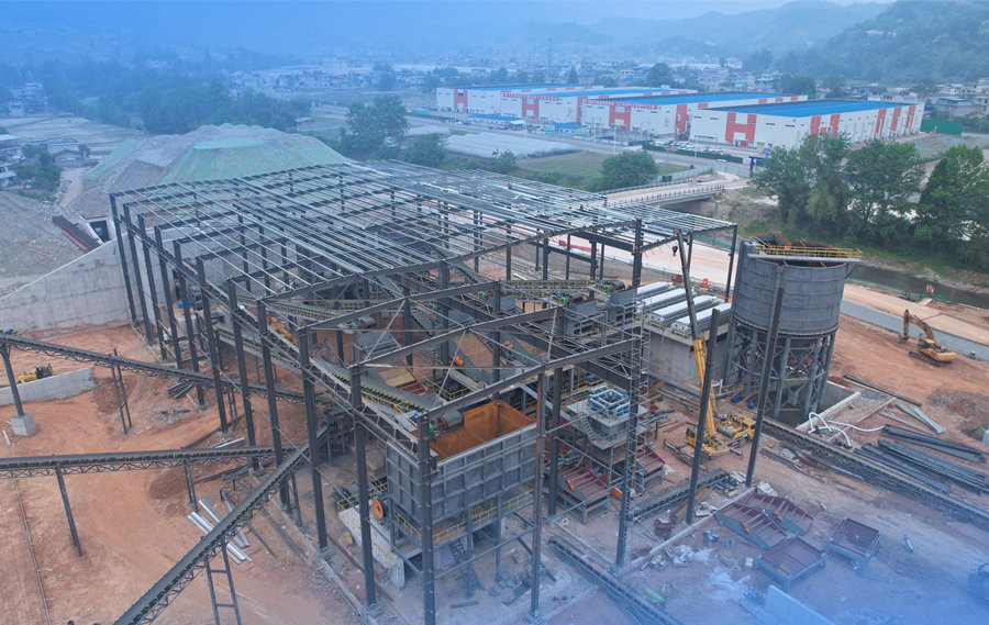 這里是四川雅安時產(chǎn)800噸復(fù)合型生產(chǎn)線施工現(xiàn)場。為什么叫復(fù)合型生產(chǎn)線呢?因為這個項目要同時破碎兩種原料,分別為夾砂鵝卵石和開山石,開山石的最大規(guī)格甚至高達1100mm。